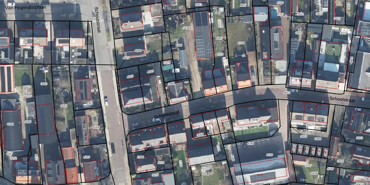 Het perceel waarop Schoolstraat 20 staat heeft een oppervlakte van 168 m². Dit is een middelgroot perceel. De perceeloppervlakte wordt geregistreerd door het Kadaster. Gedetailleerde informatie over de maten van dit perceel kunt u vinden in het rapport Kadastrale kaart met maatvoering van Schoolstraat 20.