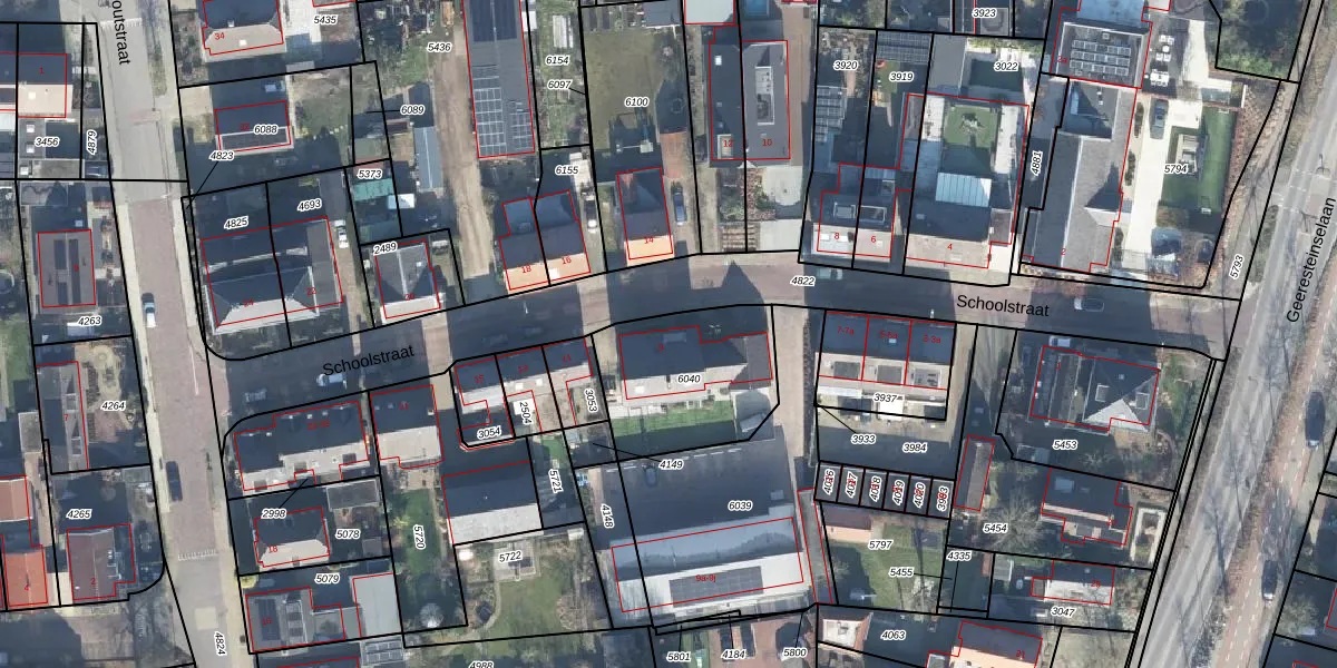 Schoolstraat 9 is gelegen op kadastraal perceel WDB02B6040. Deze kadastrale aanduiding is uniek en wordt gebruikt door het Kadaster om eigendomsrechten en andere zakelijke rechten vast te leggen. Het perceel maakt onderdeel uit van de kadastrale gemeente Woudenberg.