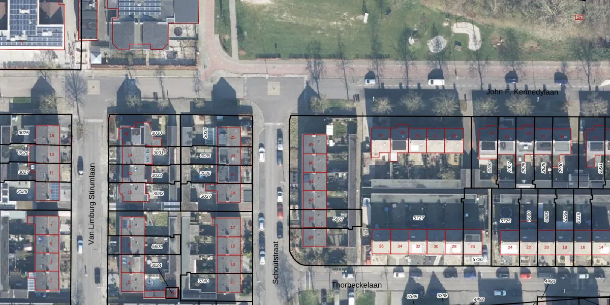 Het perceel waarop Schoutstraat 48 staat heeft een oppervlakte van 2653 m². Dit is een zeer groot perceel. De perceeloppervlakte wordt geregistreerd door het Kadaster. Gedetailleerde informatie over de maten van dit perceel kunt u vinden in het rapport Kadastrale kaart met maatvoering van Schoutstraat 48.