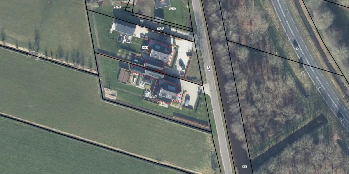 Het adres ligt op het perceel WDB02-H-1416, dat zich in de kadastrale gemeente Woudenberg bevindt. Het perceel is 1570 m² groot. Dat is kleiner dan de gemiddelde perceeloppervlakte in Woudenberg, dat op 4817,75 m² ligt. De grootste perceeloppervlakte in de kadastrale gemeente is 2,25 km². De kleinste oppervlakte bedraagt 0 m². Er zijn geen andere adressen aanwezig op het perceel. De laatste wijziging in het de Basisregistratie Kadaster (BRK) was op 13-09-2021.