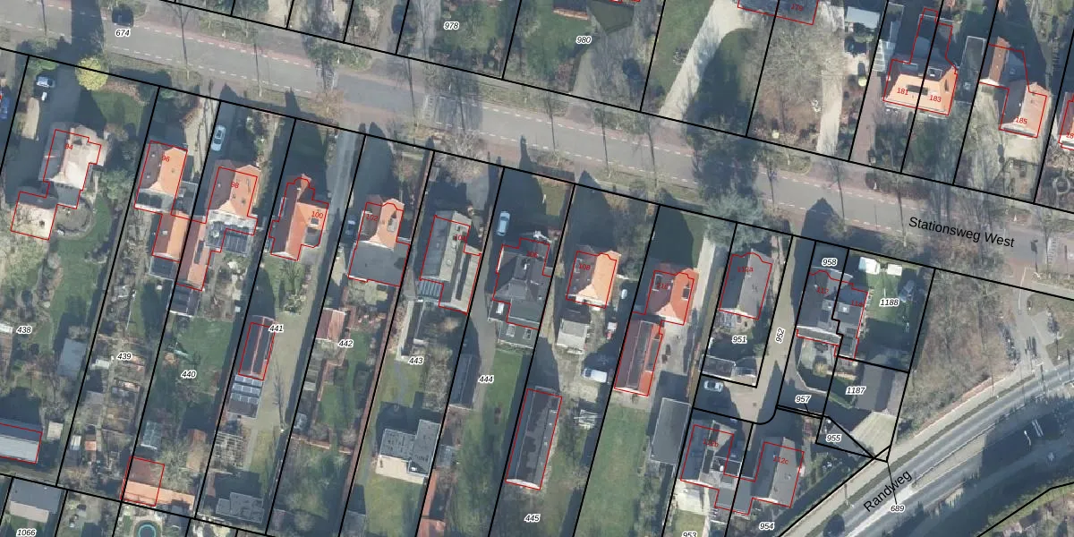 Het perceel waarop Stationsweg West 106 staat heeft een oppervlakte van 1015 m². Dit is een zeer groot perceel. De perceeloppervlakte wordt geregistreerd door het Kadaster. Gedetailleerde informatie over de maten van dit perceel kunt u vinden in het rapport Kadastrale kaart met maatvoering van Stationsweg West 106.