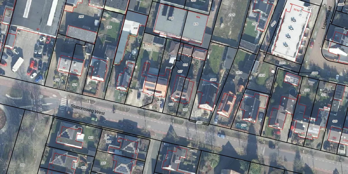 Het perceel waarop Stationsweg West 107 staat heeft een oppervlakte van 325 m². Dit is een groot perceel. De perceeloppervlakte wordt geregistreerd door het Kadaster. Gedetailleerde informatie over de maten van dit perceel kunt u vinden in het rapport Kadastrale kaart met maatvoering van Stationsweg West 107.