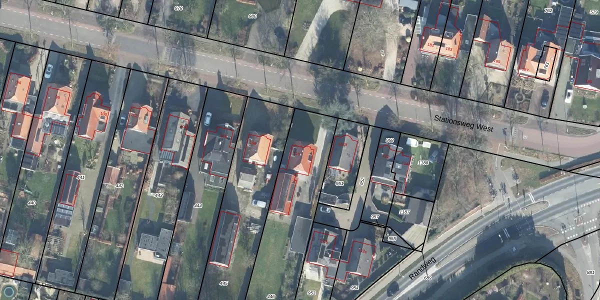 Gebruik de zoekbalk of klik op een perceel voor informatie over de adressen binnen dit perceel.