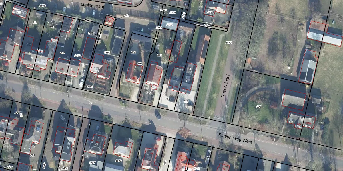 Het perceel waarop Stationsweg West 141 staat heeft een oppervlakte van 510 m². Dit is een groot perceel. De perceeloppervlakte wordt geregistreerd door het Kadaster. Gedetailleerde informatie over de maten van dit perceel kunt u vinden in het rapport Kadastrale kaart met maatvoering van Stationsweg West 141.