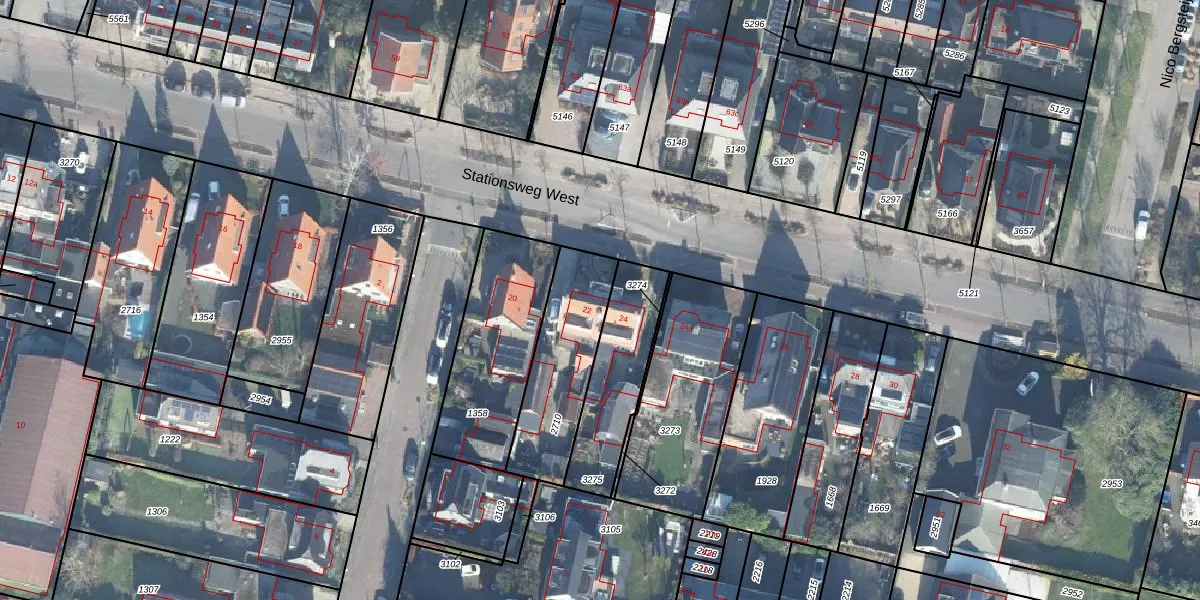 Gebruik de zoekbalk of klik op een perceel voor informatie over de adressen binnen dit perceel.