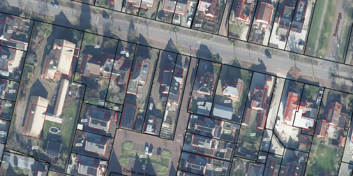 Het perceel waarop Stationsweg West 62 staat heeft een oppervlakte van 403 m². Dit is een groot perceel. De perceeloppervlakte wordt geregistreerd door het Kadaster. Gedetailleerde informatie over de maten van dit perceel kunt u vinden in het rapport Kadastrale kaart met maatvoering van Stationsweg West 62.