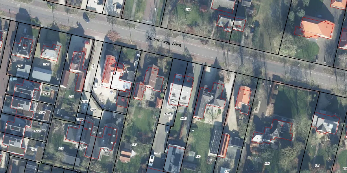 Het perceel waarop Stationsweg West 72 staat heeft een oppervlakte van 345 m². Dit is een groot perceel. De perceeloppervlakte wordt geregistreerd door het Kadaster. Gedetailleerde informatie over de maten van dit perceel kunt u vinden in het rapport Kadastrale kaart met maatvoering van Stationsweg West 72.