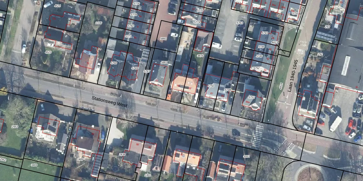 Het perceel waarop Stationsweg West 83 staat heeft een oppervlakte van 361 m². Dit is een groot perceel. De perceeloppervlakte wordt geregistreerd door het Kadaster. Gedetailleerde informatie over de maten van dit perceel kunt u vinden in het rapport Kadastrale kaart met maatvoering van Stationsweg West 83.