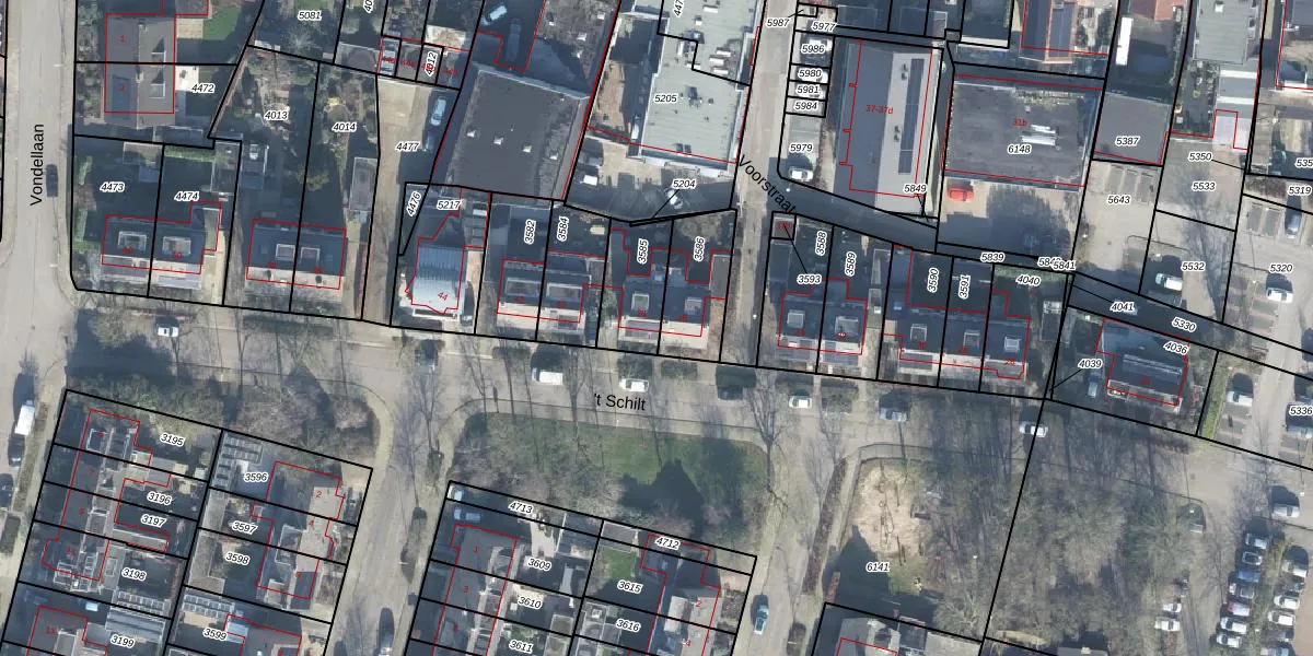 Het perceel waarop 't Schilt 38 staat heeft een oppervlakte van 188 m². Dit is een middelgroot perceel. De perceeloppervlakte wordt geregistreerd door het Kadaster. Gedetailleerde informatie over de maten van dit perceel kunt u vinden in het rapport Kadastrale kaart met maatvoering van 't Schilt 38.
