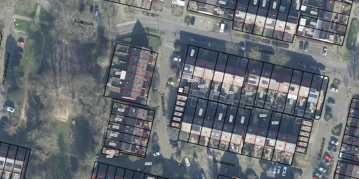 Gebruik de zoekbalk of klik op een perceel voor informatie over de adressen binnen dit perceel.
