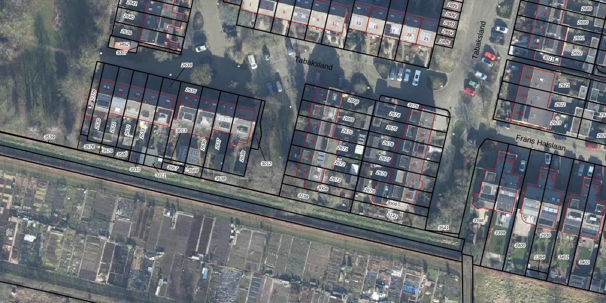 Gebruik de zoekbalk of klik op een perceel voor informatie over de adressen binnen dit perceel.