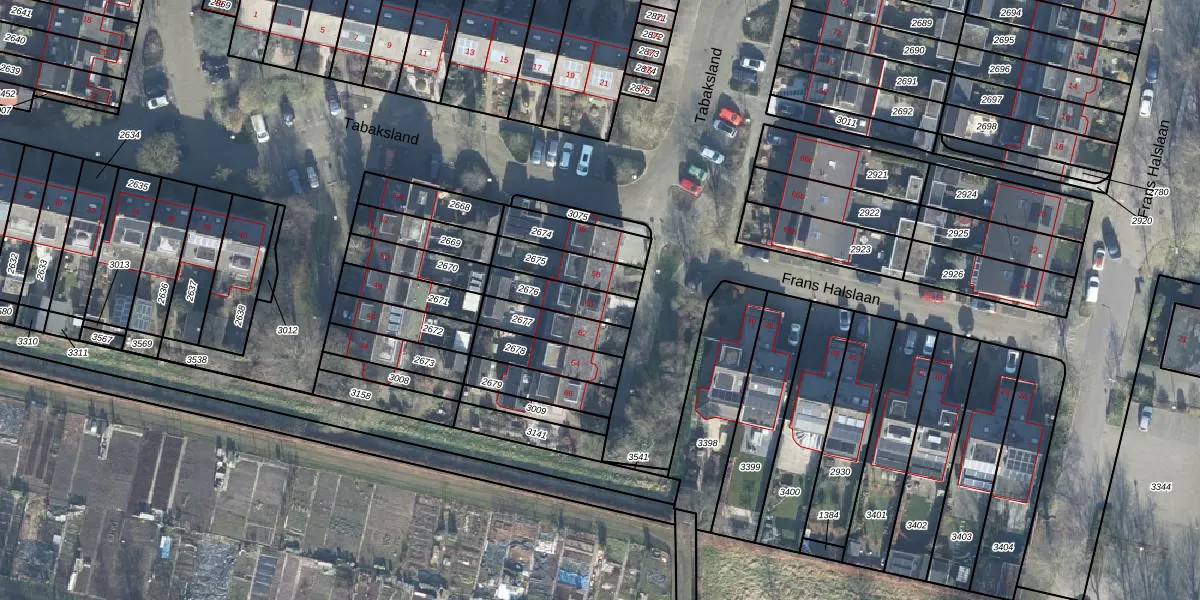 Gebruik de zoekbalk of klik op een perceel voor informatie over de adressen binnen dit perceel.