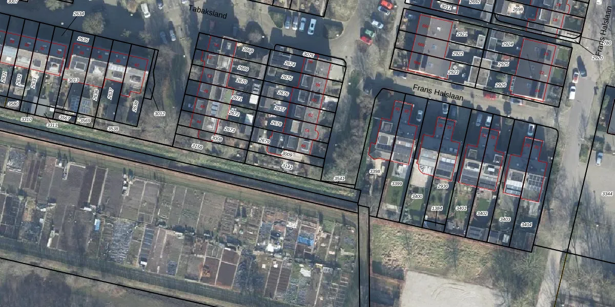 Gebruik de zoekbalk of klik op een perceel voor informatie over de adressen binnen dit perceel.