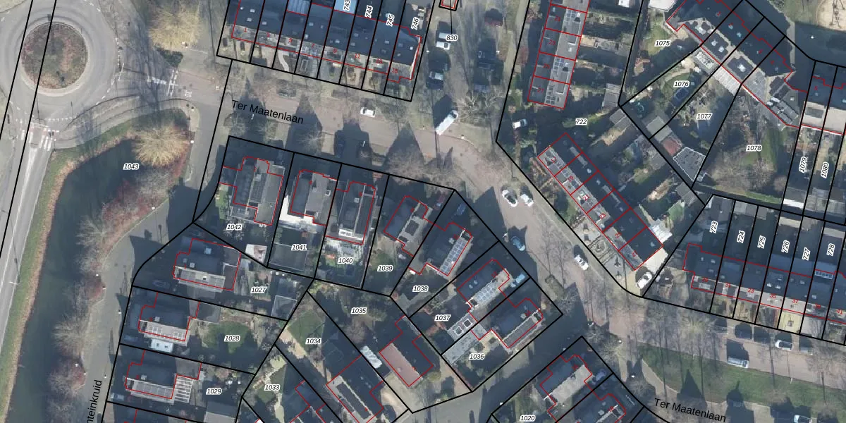 Ter Maatenlaan 8 is gelegen op kadastraal perceel WDB02H1039. Deze kadastrale aanduiding is uniek en wordt gebruikt door het Kadaster om eigendomsrechten en andere zakelijke rechten vast te leggen. Het perceel maakt onderdeel uit van de kadastrale gemeente Woudenberg.