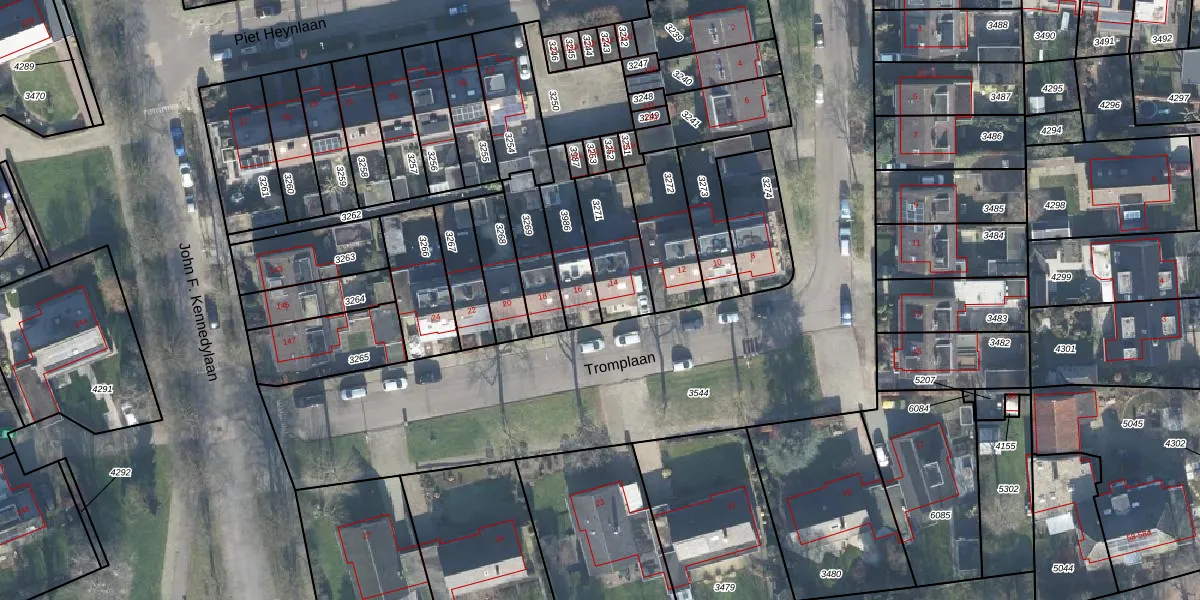 Het perceel waarop Tromplaan 14 staat heeft een oppervlakte van 220 m². Dit is een middelgroot perceel. De perceeloppervlakte wordt geregistreerd door het Kadaster. Gedetailleerde informatie over de maten van dit perceel kunt u vinden in het rapport Kadastrale kaart met maatvoering van Tromplaan 14.