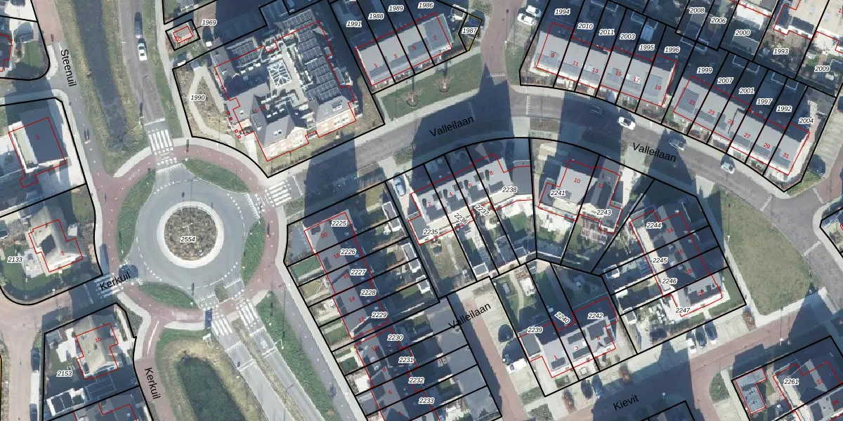 Het perceel waarop Valleilaan 2 staat heeft een oppervlakte van 311 m². Dit is een groot perceel. De perceeloppervlakte wordt geregistreerd door het Kadaster. Gedetailleerde informatie over de maten van dit perceel kunt u vinden in het rapport Kadastrale kaart met maatvoering van Valleilaan 2.
