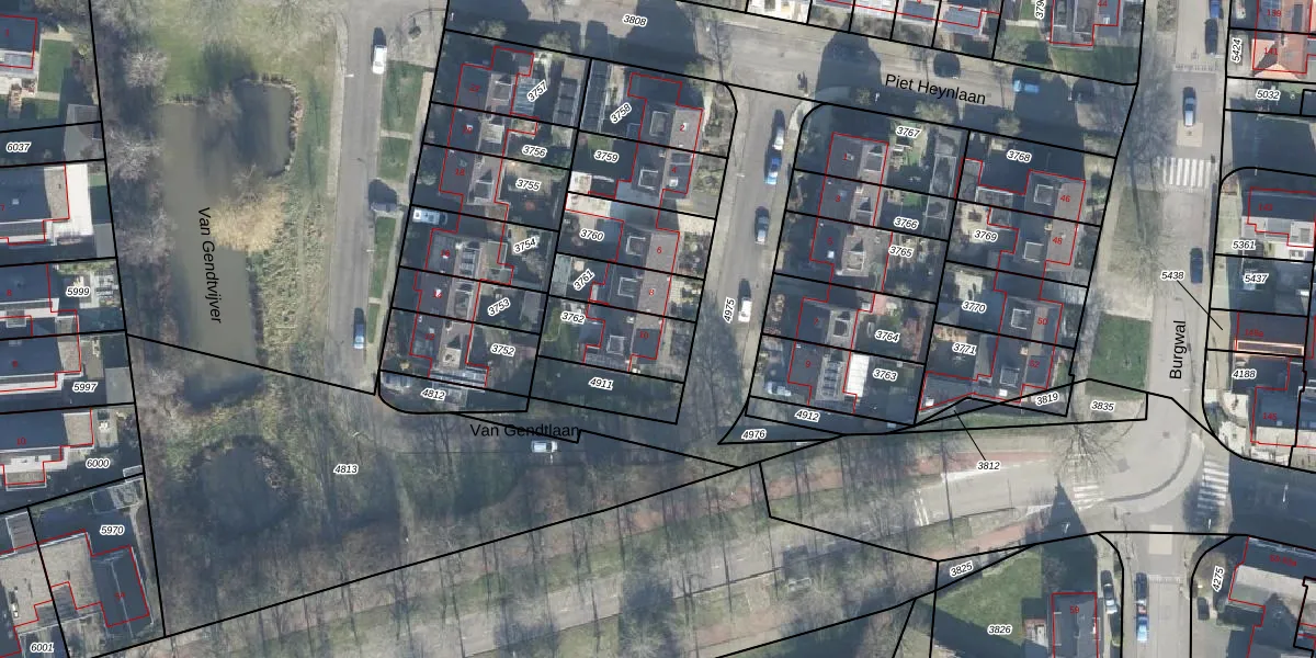 Gebruik de zoekbalk of klik op een perceel voor informatie over de adressen binnen dit perceel.