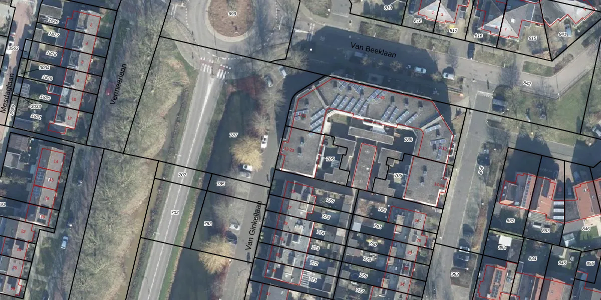 Van Ginkellaan 15 is gelegen op kadastraal perceel WDB02H705. Deze kadastrale aanduiding is uniek en wordt gebruikt door het Kadaster om eigendomsrechten en andere zakelijke rechten vast te leggen. Het perceel maakt onderdeel uit van de kadastrale gemeente Woudenberg.