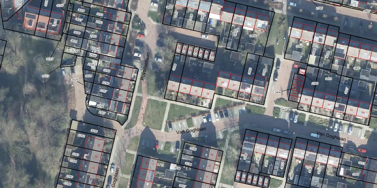 Van Goghlaan 19 is gelegen op kadastraal perceel WDB02E3456. Deze kadastrale aanduiding is uniek en wordt gebruikt door het Kadaster om eigendomsrechten en andere zakelijke rechten vast te leggen. Het perceel maakt onderdeel uit van de kadastrale gemeente Woudenberg.