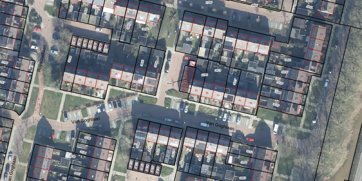 Van Goghlaan 31-f is gelegen op kadastraal perceel WDB02E3406. Deze kadastrale aanduiding is uniek en wordt gebruikt door het Kadaster om eigendomsrechten en andere zakelijke rechten vast te leggen. Het perceel maakt onderdeel uit van de kadastrale gemeente Woudenberg.