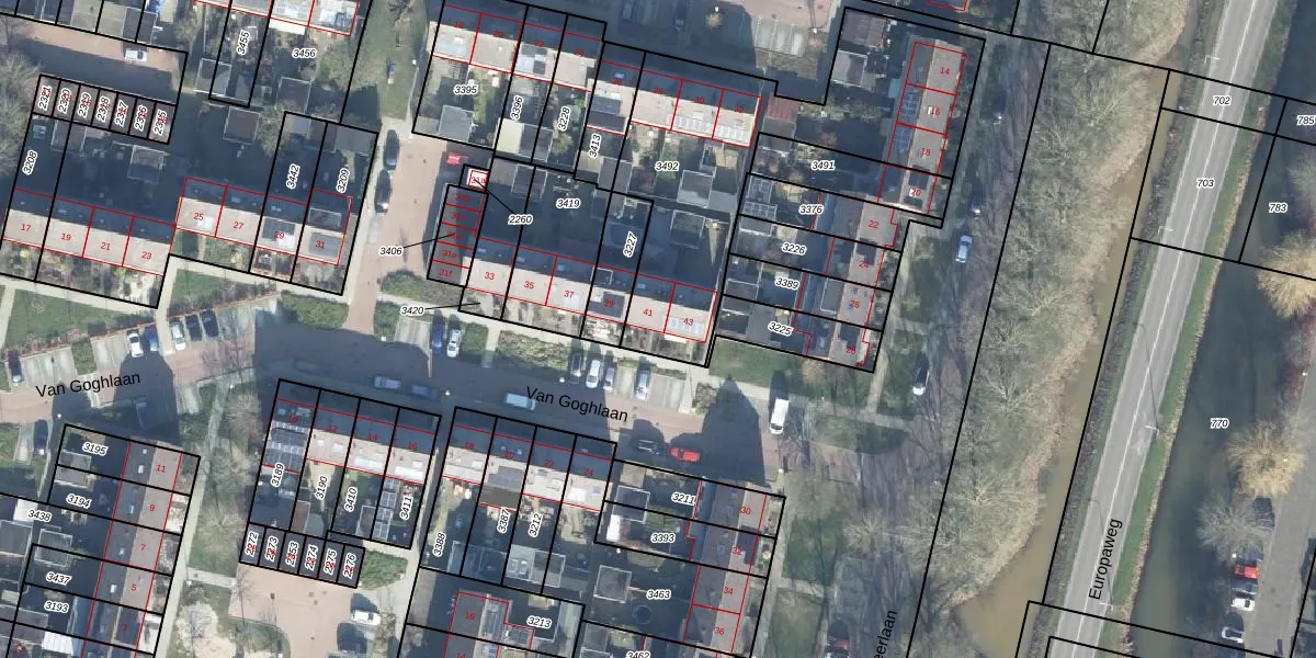 Van Goghlaan 41 is gelegen op kadastraal perceel WDB02E3492. Deze kadastrale aanduiding is uniek en wordt gebruikt door het Kadaster om eigendomsrechten en andere zakelijke rechten vast te leggen. Het perceel maakt onderdeel uit van de kadastrale gemeente Woudenberg.