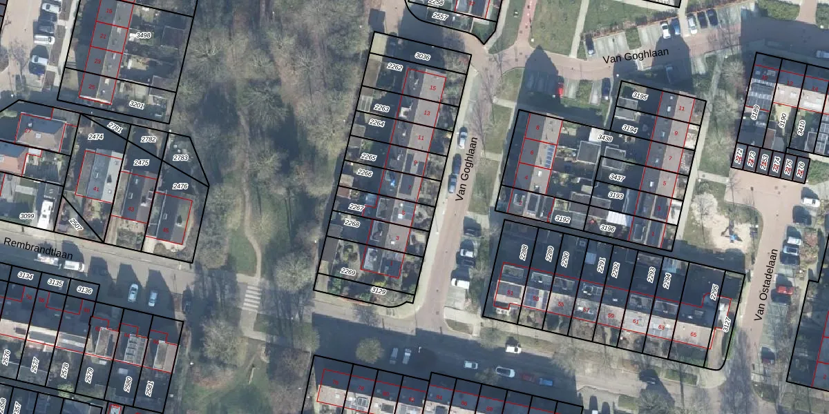 Van Goghlaan 5 is gelegen op kadastraal perceel WDB02E2267. Deze kadastrale aanduiding is uniek en wordt gebruikt door het Kadaster om eigendomsrechten en andere zakelijke rechten vast te leggen. Het perceel maakt onderdeel uit van de kadastrale gemeente Woudenberg.