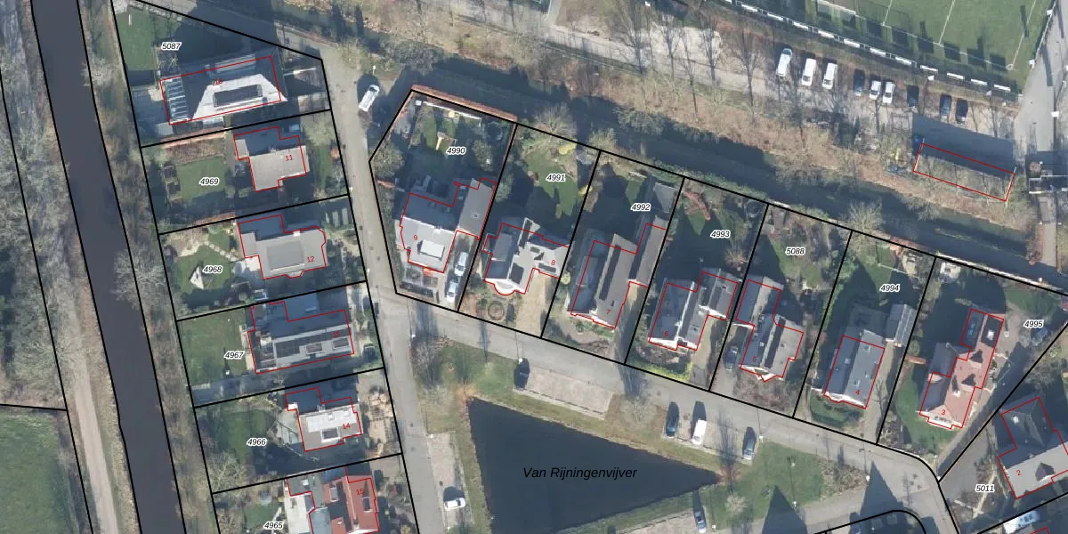 Van Rijningenpark 8 is gelegen op kadastraal perceel WDB02B4991. Deze kadastrale aanduiding is uniek en wordt gebruikt door het Kadaster om eigendomsrechten en andere zakelijke rechten vast te leggen. Het perceel maakt onderdeel uit van de kadastrale gemeente Woudenberg.