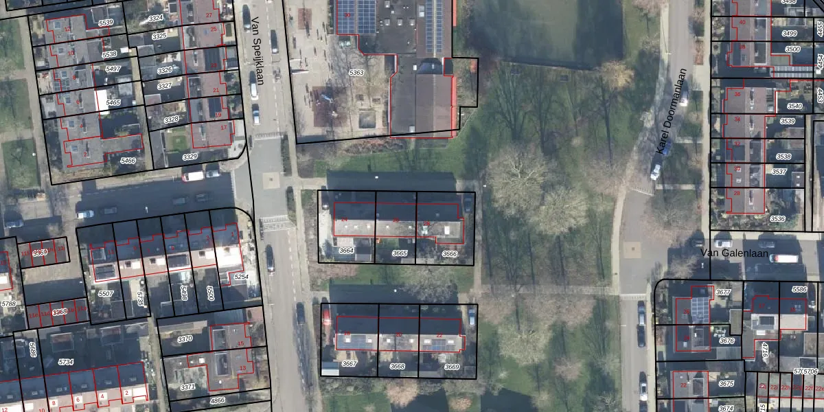 Van Speijklaan 26 is gelegen op kadastraal perceel WDB02B3665. Deze kadastrale aanduiding is uniek en wordt gebruikt door het Kadaster om eigendomsrechten en andere zakelijke rechten vast te leggen. Het perceel maakt onderdeel uit van de kadastrale gemeente Woudenberg.