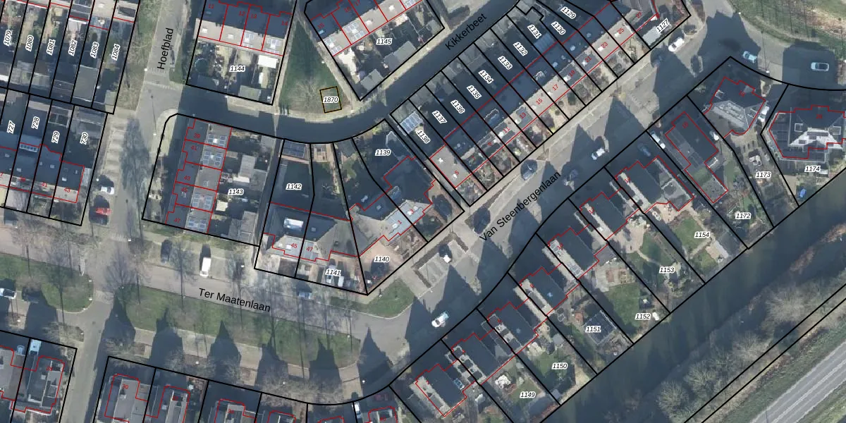 Gebruik de zoekbalk of klik op een perceel voor informatie over de adressen binnen dit perceel.