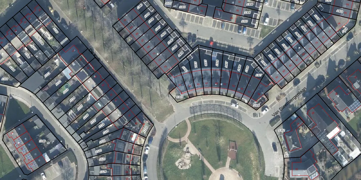 Gebruik de zoekbalk of klik op een perceel voor informatie over de adressen binnen dit perceel.