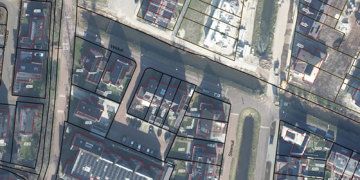 Gebruik de zoekbalk of klik op een perceel voor informatie over de adressen binnen dit perceel.
