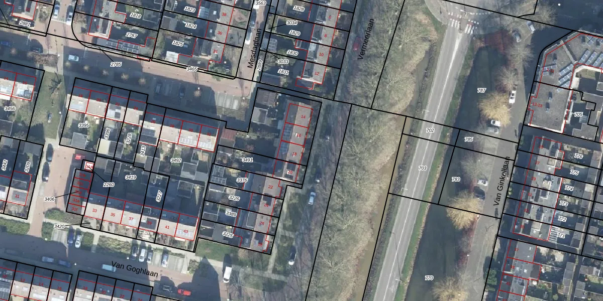 Vermeerlaan 18 is gelegen op kadastraal perceel WDB02E3492. Deze kadastrale aanduiding is uniek en wordt gebruikt door het Kadaster om eigendomsrechten en andere zakelijke rechten vast te leggen. Het perceel maakt onderdeel uit van de kadastrale gemeente Woudenberg.