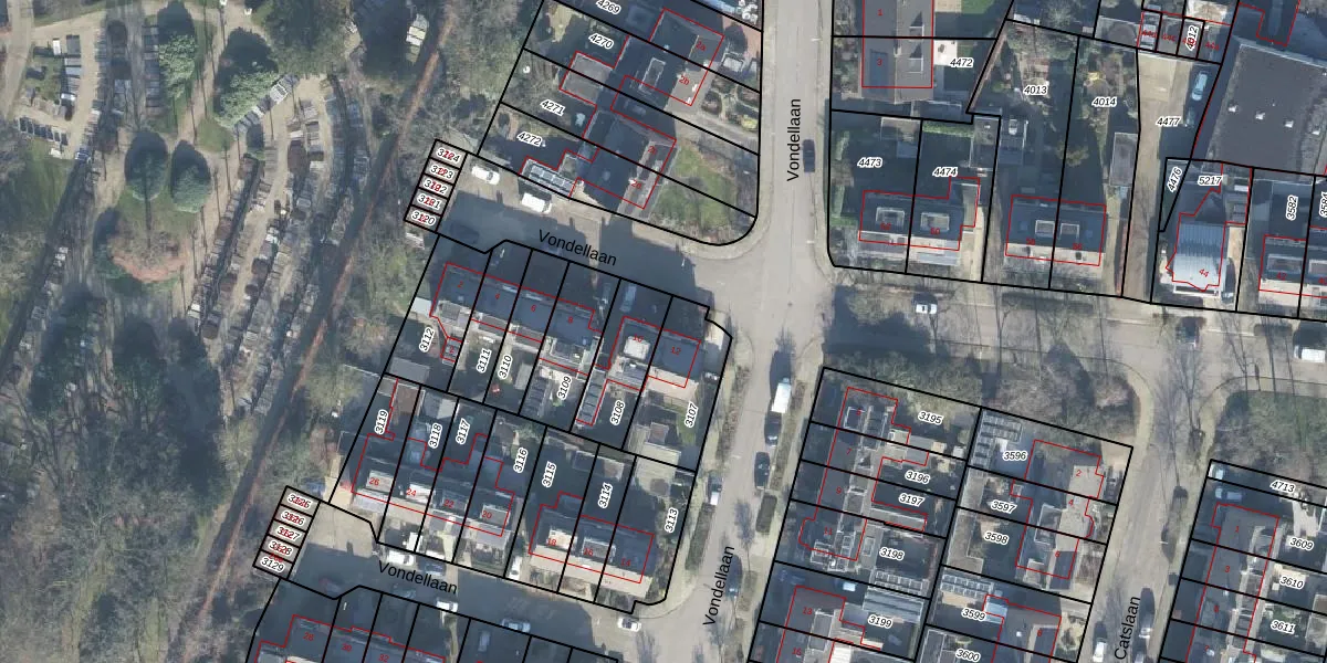 Het perceel waarop Vondellaan 12 staat heeft een oppervlakte van 253 m². Dit is een middelgroot perceel. De perceeloppervlakte wordt geregistreerd door het Kadaster. Gedetailleerde informatie over de maten van dit perceel kunt u vinden in het rapport Kadastrale kaart met maatvoering van Vondellaan 12.
