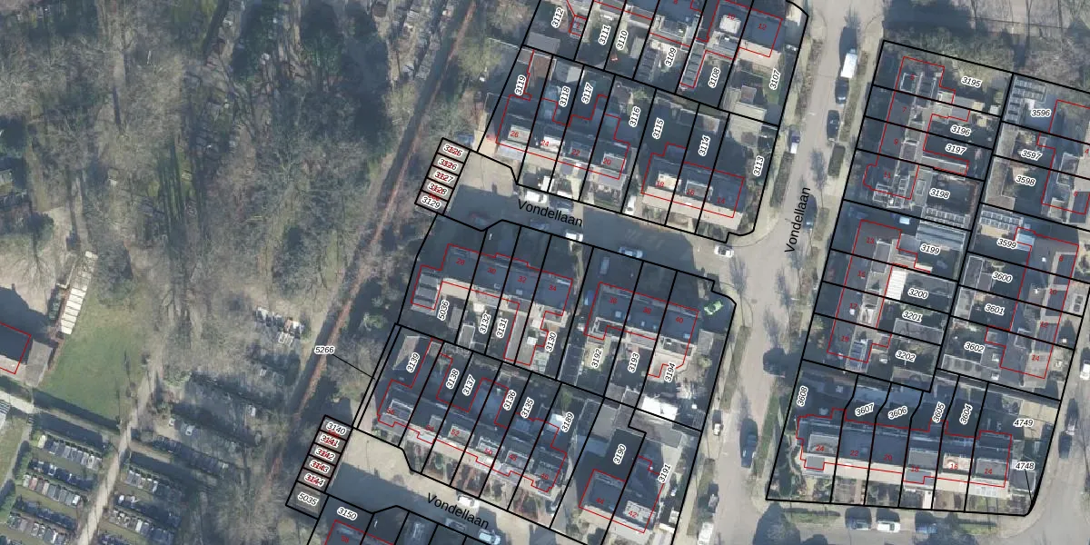 Het perceel waarop Vondellaan 34 staat heeft een oppervlakte van 203 m². Dit is een middelgroot perceel. De perceeloppervlakte wordt geregistreerd door het Kadaster. Gedetailleerde informatie over de maten van dit perceel kunt u vinden in het rapport Kadastrale kaart met maatvoering van Vondellaan 34.