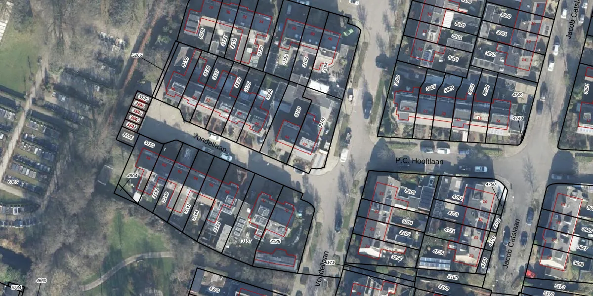 Gebruik de zoekbalk of klik op een perceel voor informatie over de adressen binnen dit perceel.