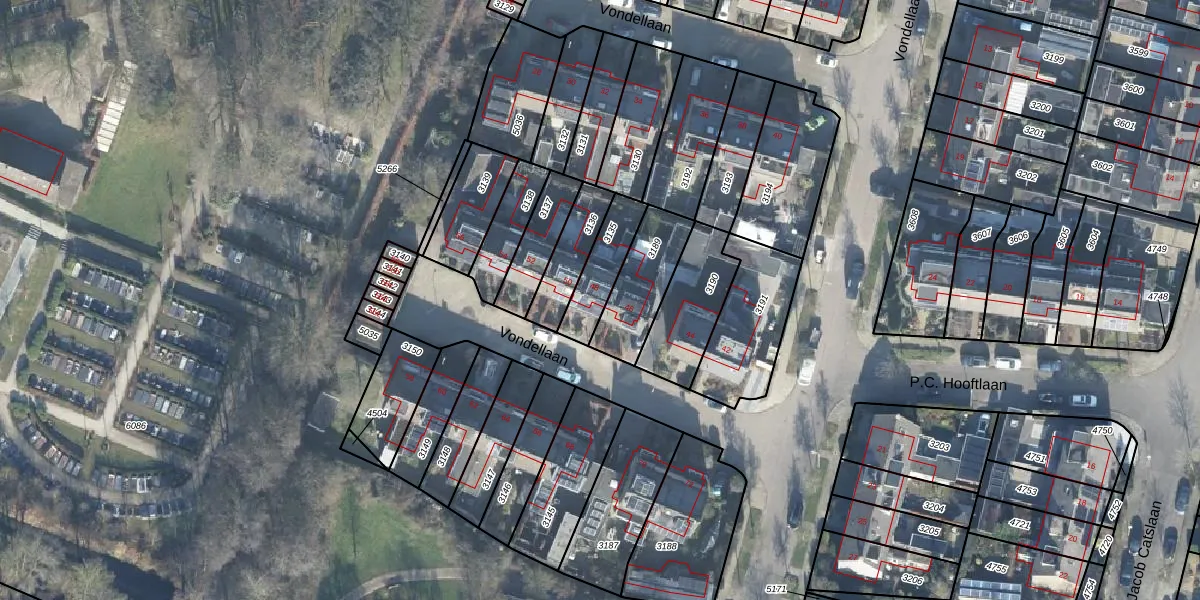 Het perceel waarop Vondellaan 48 staat heeft een oppervlakte van 148 m². Dit is een middelgroot perceel. De perceeloppervlakte wordt geregistreerd door het Kadaster. Gedetailleerde informatie over de maten van dit perceel kunt u vinden in het rapport Kadastrale kaart met maatvoering van Vondellaan 48.