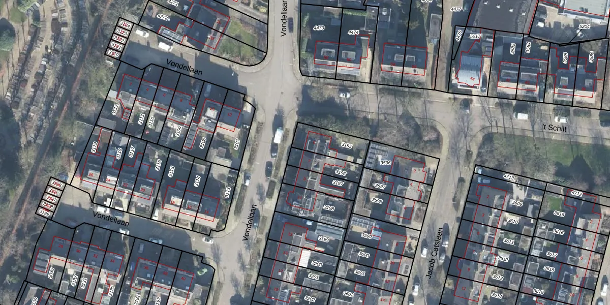 Gebruik de zoekbalk of klik op een perceel voor informatie over de adressen binnen dit perceel.