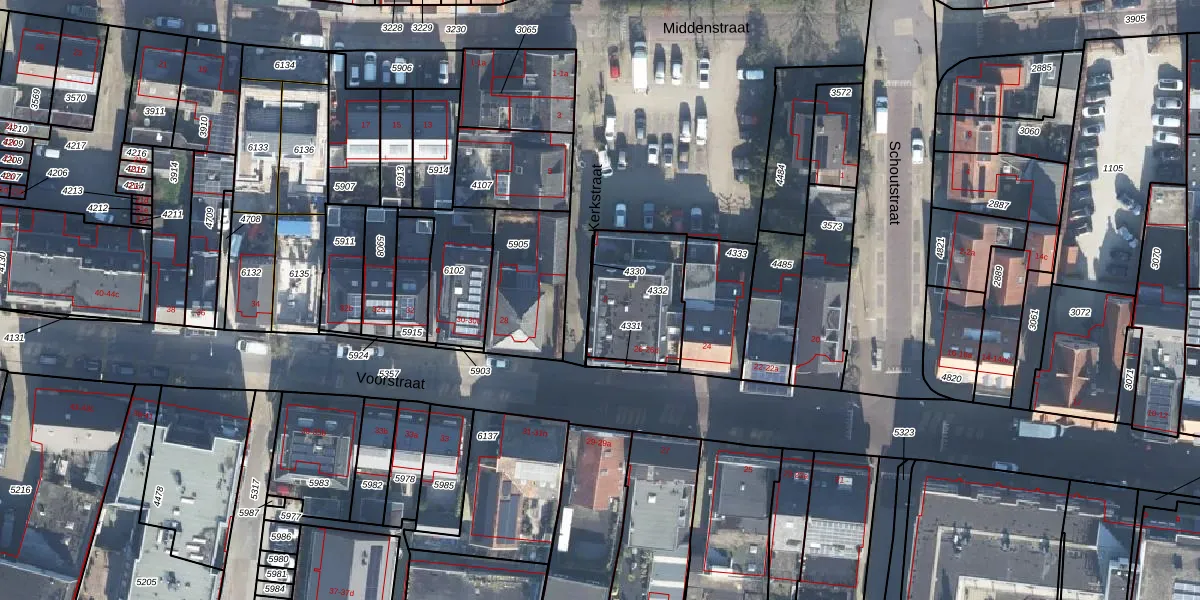 Het perceel waarop Voorstraat 26-a staat heeft een oppervlakte van 323 m². Dit is een groot perceel. De perceeloppervlakte wordt geregistreerd door het Kadaster. Gedetailleerde informatie over de maten van dit perceel kunt u vinden in het rapport Kadastrale kaart met maatvoering van Voorstraat 26-a.