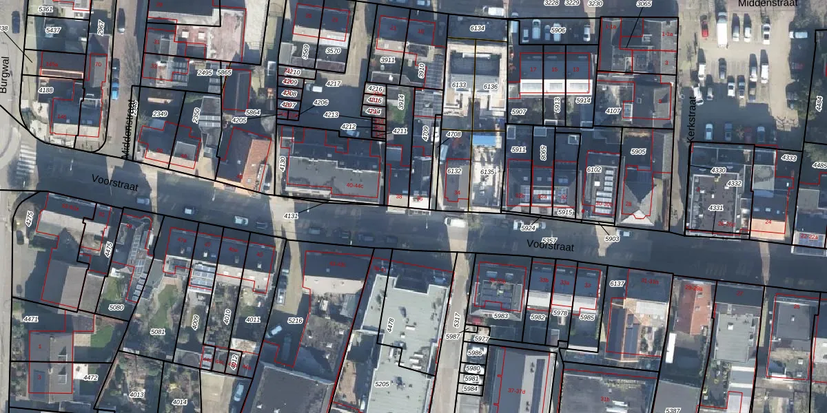 Het perceel waarop Voorstraat 36 staat heeft een oppervlakte van 163 m². Dit is een middelgroot perceel. De perceeloppervlakte wordt geregistreerd door het Kadaster. Gedetailleerde informatie over de maten van dit perceel kunt u vinden in het rapport Kadastrale kaart met maatvoering van Voorstraat 36.