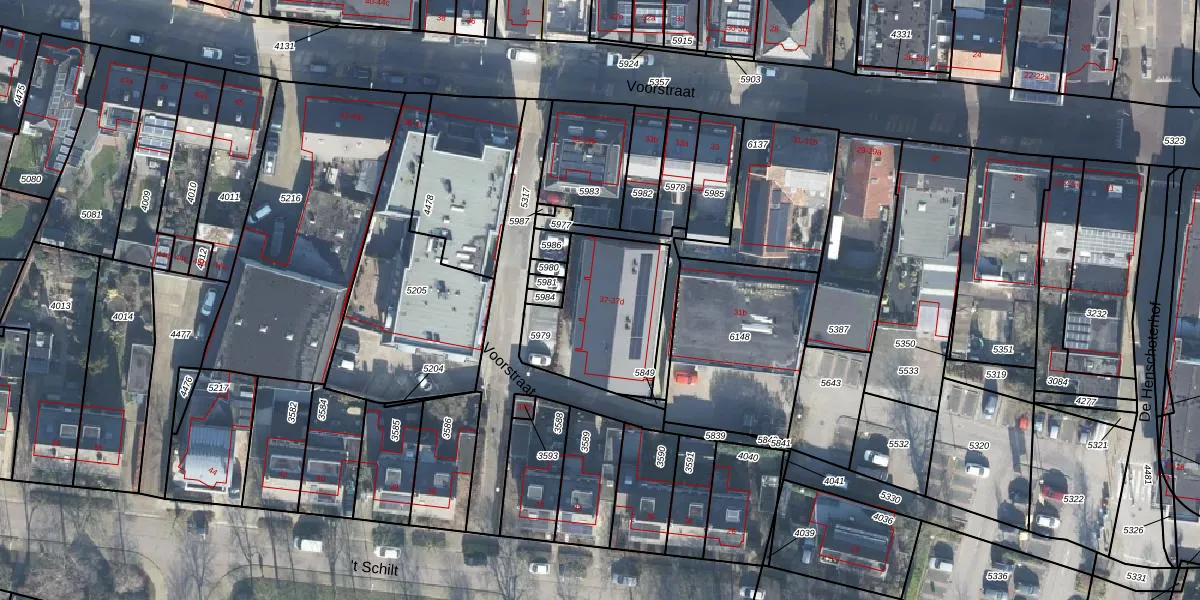 Het perceel waarop Voorstraat 37 staat heeft een oppervlakte van 478 m². Dit is een groot perceel. De perceeloppervlakte wordt geregistreerd door het Kadaster. Gedetailleerde informatie over de maten van dit perceel kunt u vinden in het rapport Kadastrale kaart met maatvoering van Voorstraat 37.