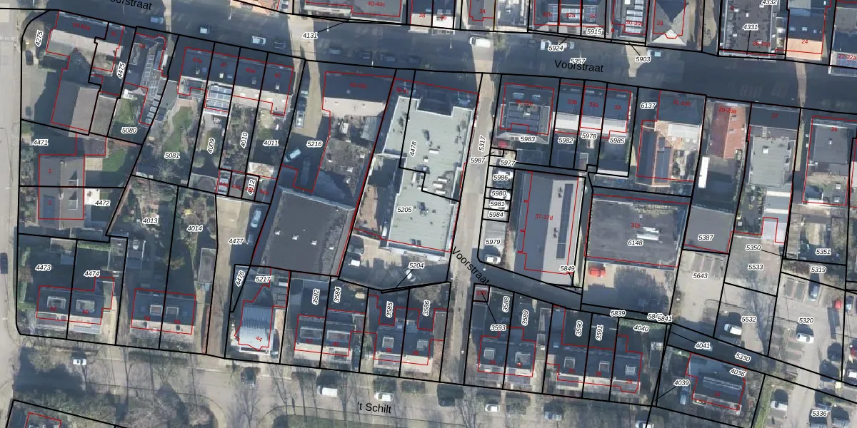 Het perceel waarop Voorstraat 39-g staat heeft een oppervlakte van 730 m². Dit is een groot perceel. De perceeloppervlakte wordt geregistreerd door het Kadaster. Gedetailleerde informatie over de maten van dit perceel kunt u vinden in het rapport Kadastrale kaart met maatvoering van Voorstraat 39-g.