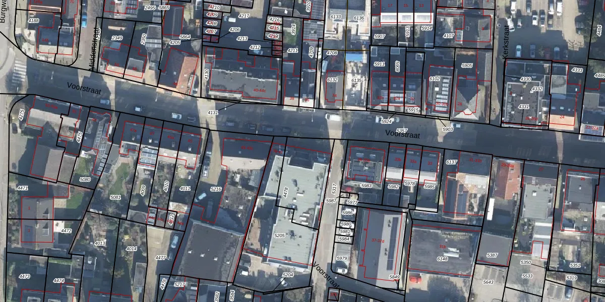 Het perceel waarop Voorstraat 41 staat heeft een oppervlakte van 423 m². Dit is een groot perceel. De perceeloppervlakte wordt geregistreerd door het Kadaster. Gedetailleerde informatie over de maten van dit perceel kunt u vinden in het rapport Kadastrale kaart met maatvoering van Voorstraat 41.