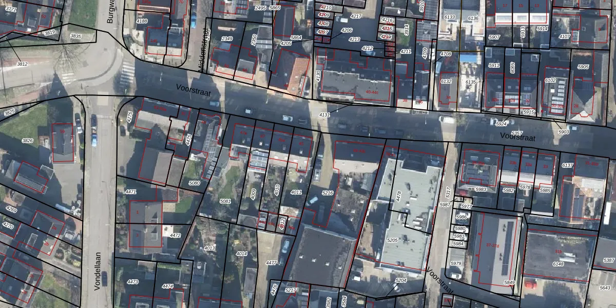 Voorstraat 45 is gelegen op kadastraal perceel WDB02B4011. Deze kadastrale aanduiding is uniek en wordt gebruikt door het Kadaster om eigendomsrechten en andere zakelijke rechten vast te leggen. Het perceel maakt onderdeel uit van de kadastrale gemeente Woudenberg.