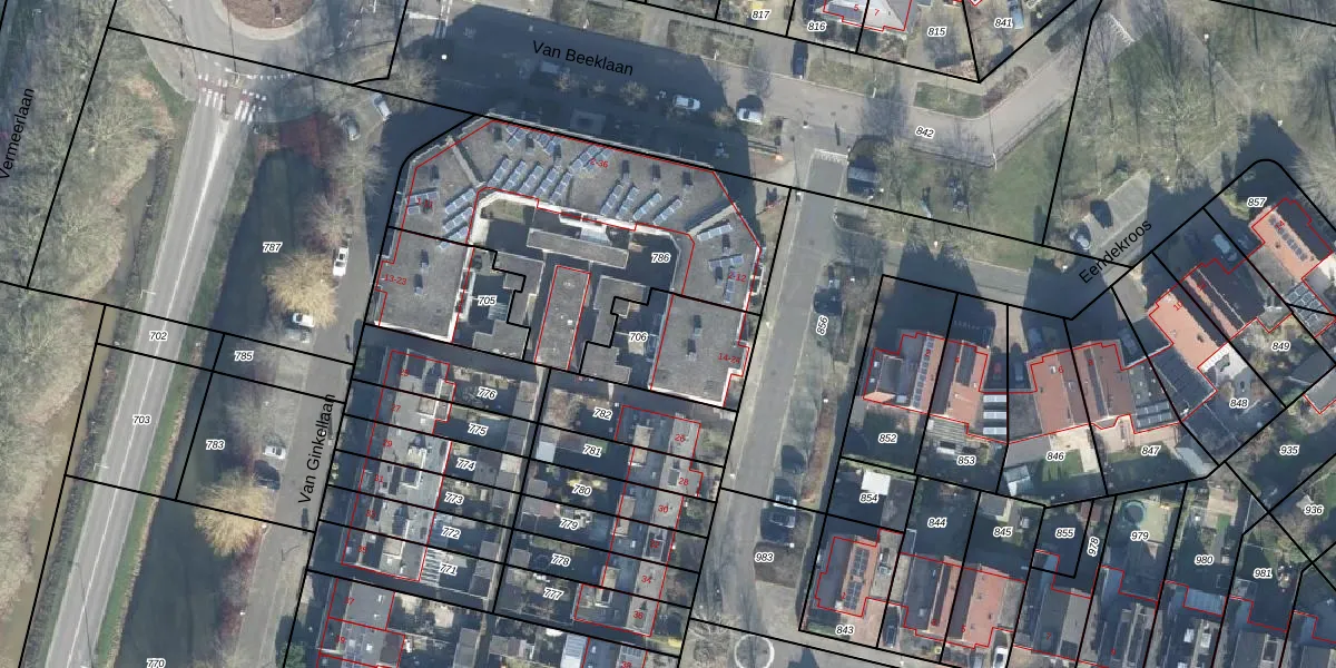 Het adres ligt op het perceel WDB02-H-706, dat zich in de kadastrale gemeente Woudenberg bevindt. Het perceel is kleiner dan gemiddeld in Woudenberg. Het perceel is 320 m² groot, terwijl het gemiddelde ligt op 4823,43 m². Het kleinste perceel in de kadastrale gemeente is 0 m² groot. De grootste perceeloppervlakte is 2,25 km². Er zijn 6 adressen aanwezig op het perceel. De huidige grenzen van het perceel zijn digitaal in de Basisregistratie Kadaster (BRK) geregistreerd op 27-01-2003.