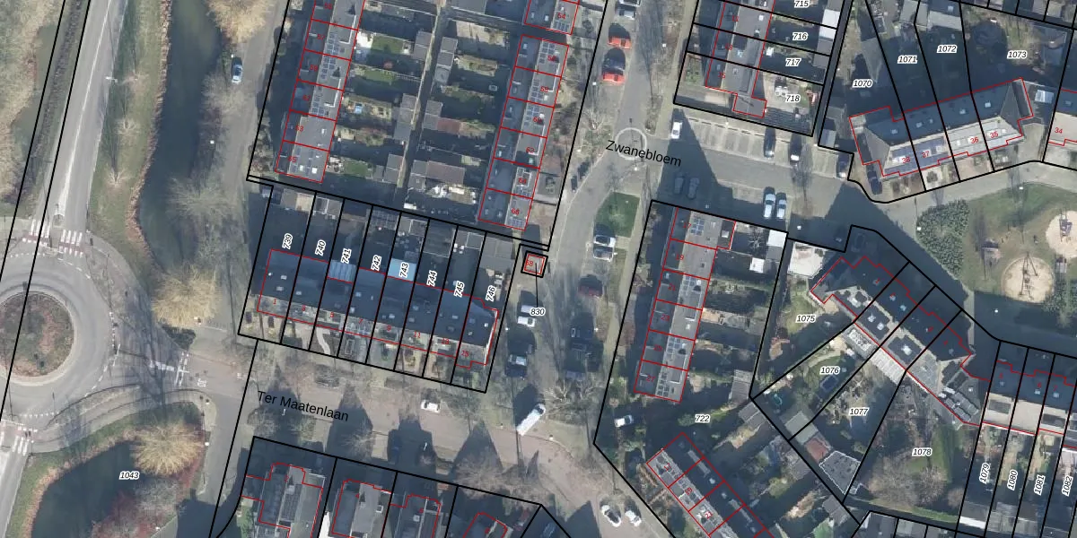 Gebruik de zoekbalk of klik op een perceel voor informatie over de adressen binnen dit perceel.
