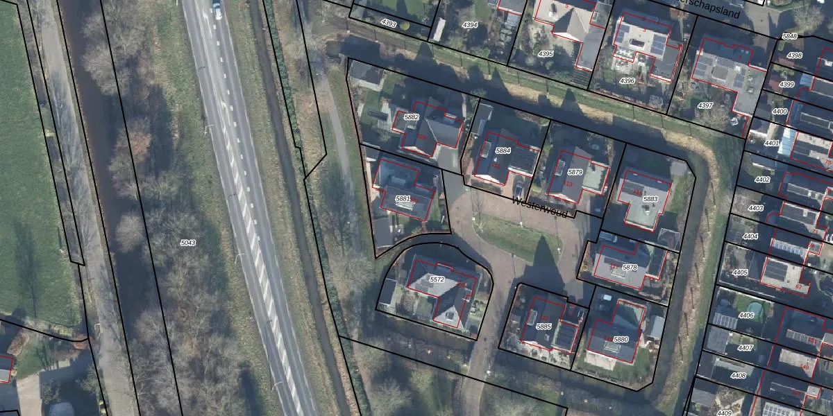 Gebruik de zoekbalk of klik op een perceel voor informatie over de adressen binnen dit perceel.
