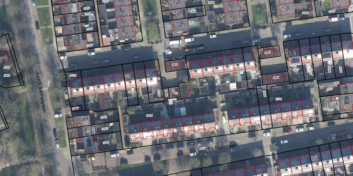 Het perceel waarop Witte de Withlaan 23-f staat heeft een oppervlakte van 36 m². Dit is een klein perceel. De perceeloppervlakte wordt geregistreerd door het Kadaster. Gedetailleerde informatie over de maten van dit perceel kunt u vinden in het rapport Kadastrale kaart met maatvoering van Witte de Withlaan 23-f.
