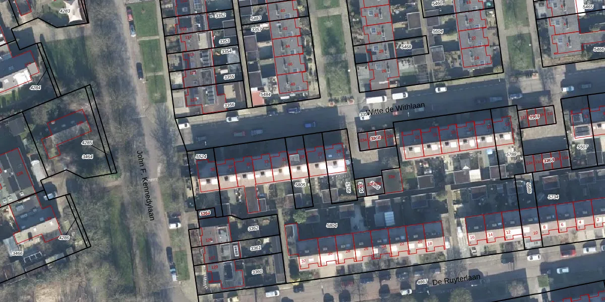 Gebruik de zoekbalk of klik op een perceel voor informatie over de adressen binnen dit perceel.