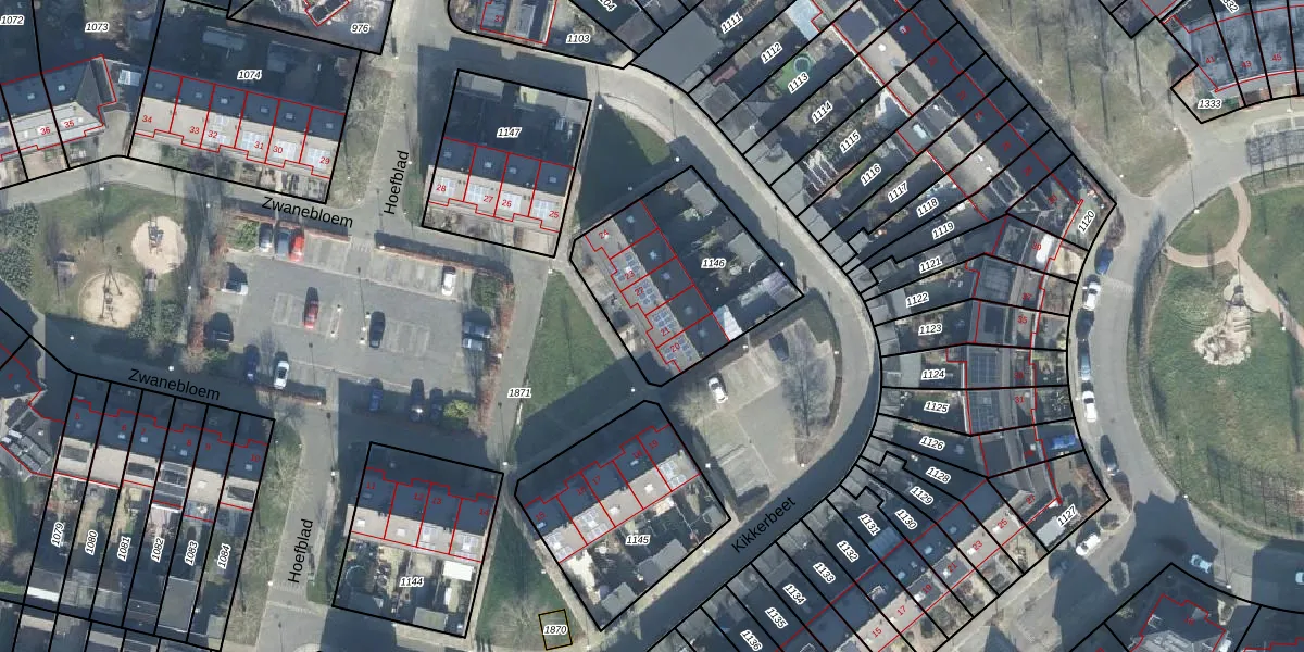 Het perceel waarop Zwanebloem 21 staat heeft een oppervlakte van 655 m². Dit is een groot perceel. De perceeloppervlakte wordt geregistreerd door het Kadaster. Gedetailleerde informatie over de maten van dit perceel kunt u vinden in het rapport Kadastrale kaart met maatvoering van Zwanebloem 21.