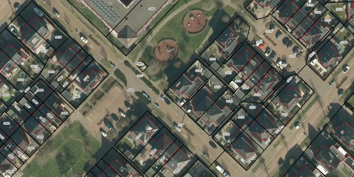 Het perceel waarop Bastion 1 staat heeft een oppervlakte van 328 m². Dit is een groot perceel. De perceeloppervlakte wordt geregistreerd door het Kadaster. Gedetailleerde informatie over de maten van dit perceel kunt u vinden in het rapport Kadastrale kaart met maatvoering van Bastion 1.